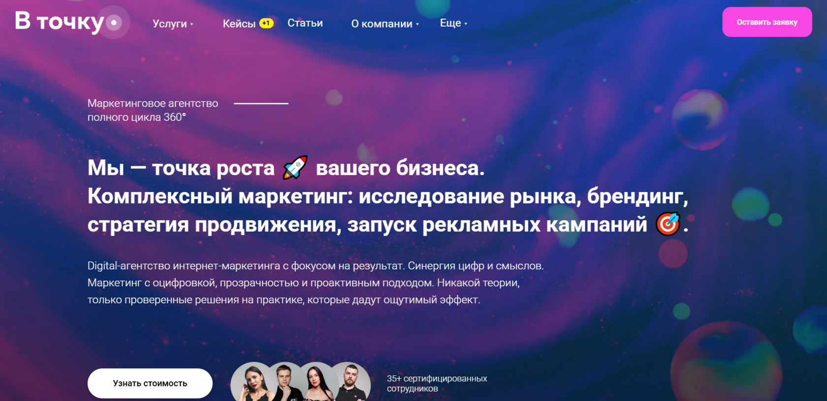 Крупное агентство с широким digital-профилем. SEO выстроено как системная услуга с аналитикой, контентом и стратегией роста.