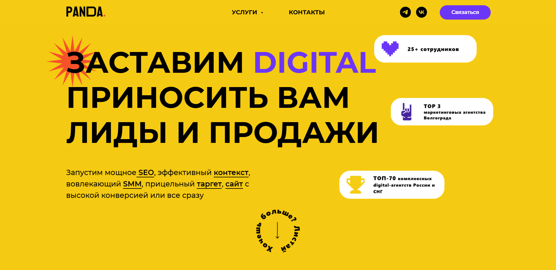 Panda Digital делает акцент на стратегию и работу с воронками в соцсетях. SMM здесь встроен в общую маркетинговую модель, а не существует отдельно.