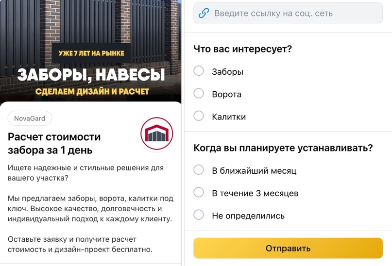 Этап креативов. Здесь мудрить не стараюсь, поэтому пишу как прямые текста, так и сторителы (от уже установивших забор, навес, где подсвечивал трудности или проблемы нашей ЦА, в момент выбора подрядчика - чтобы узнавали себя).