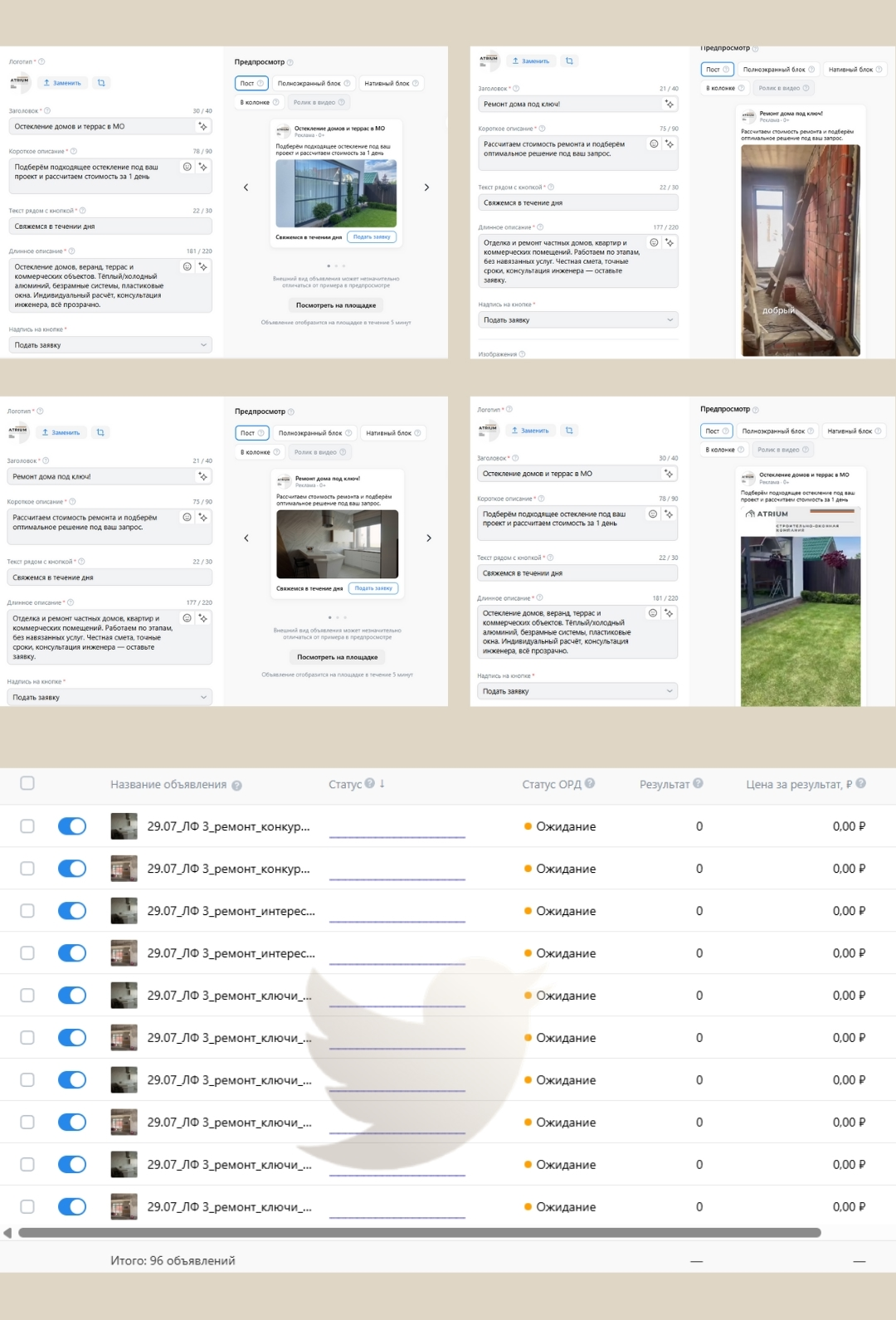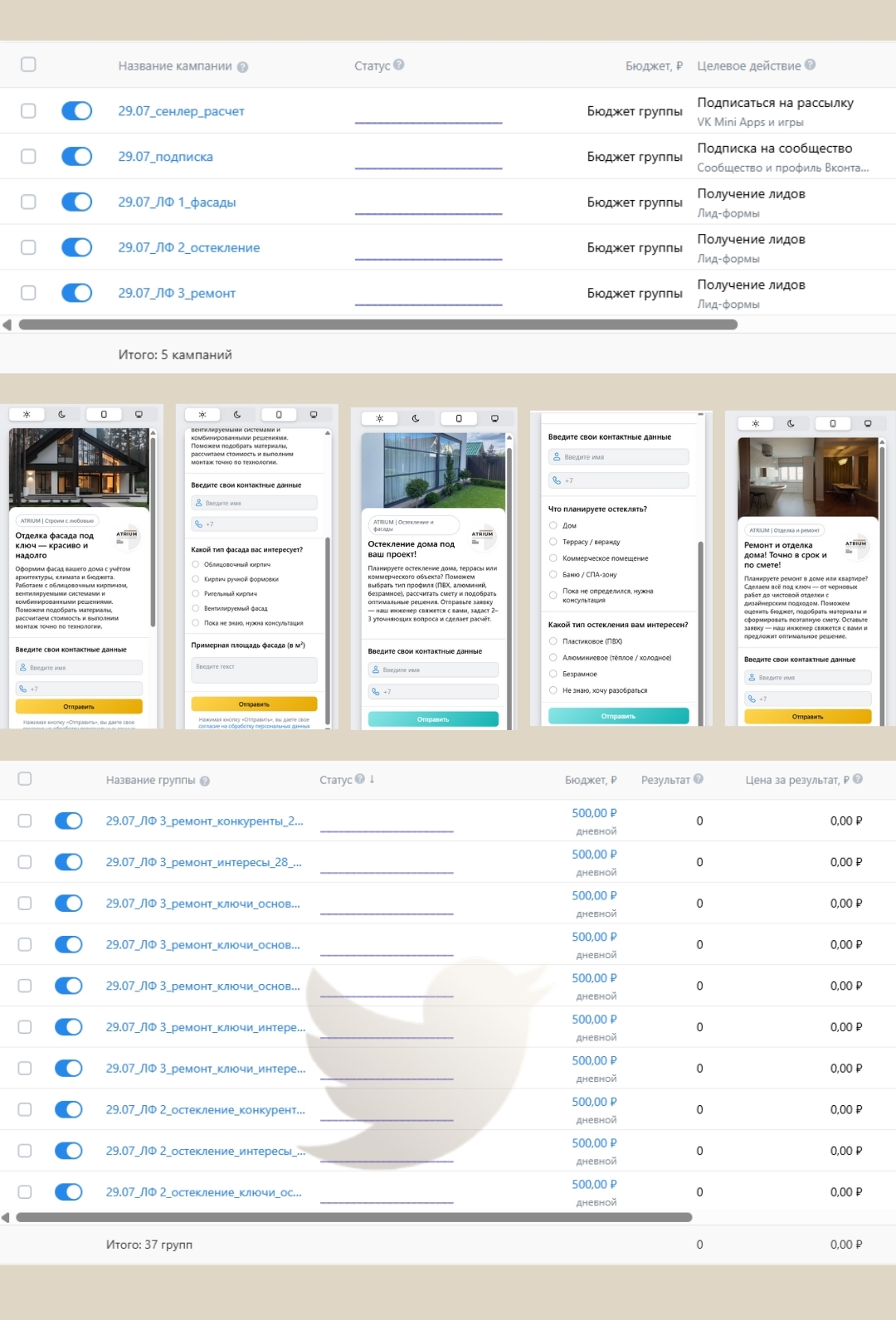 — Перепаковать дорогие кампании («остекление», «ремонт»)