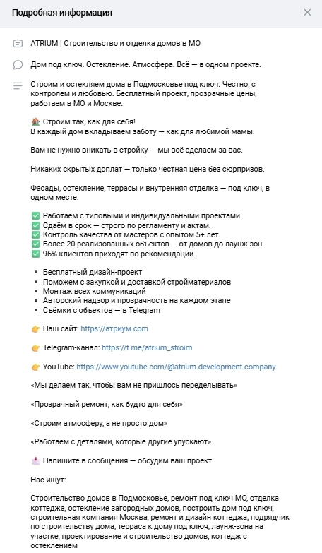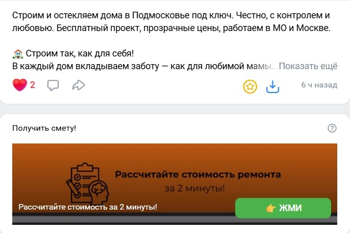 Цель: собрать заявки на строительство и ремонт домов через VK