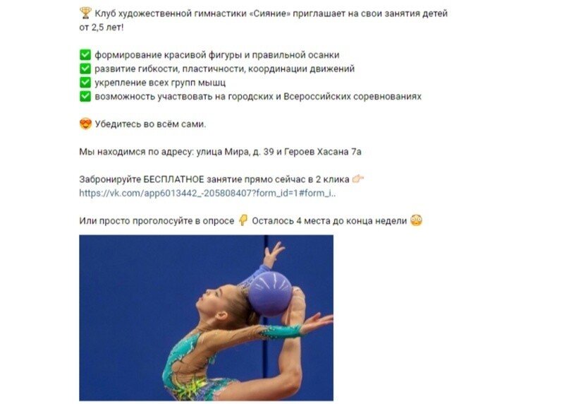 - активные пользователи смежных групп (музыкальные школы, рисование, математика и т.д.)подписчики знаменитых спортсменок