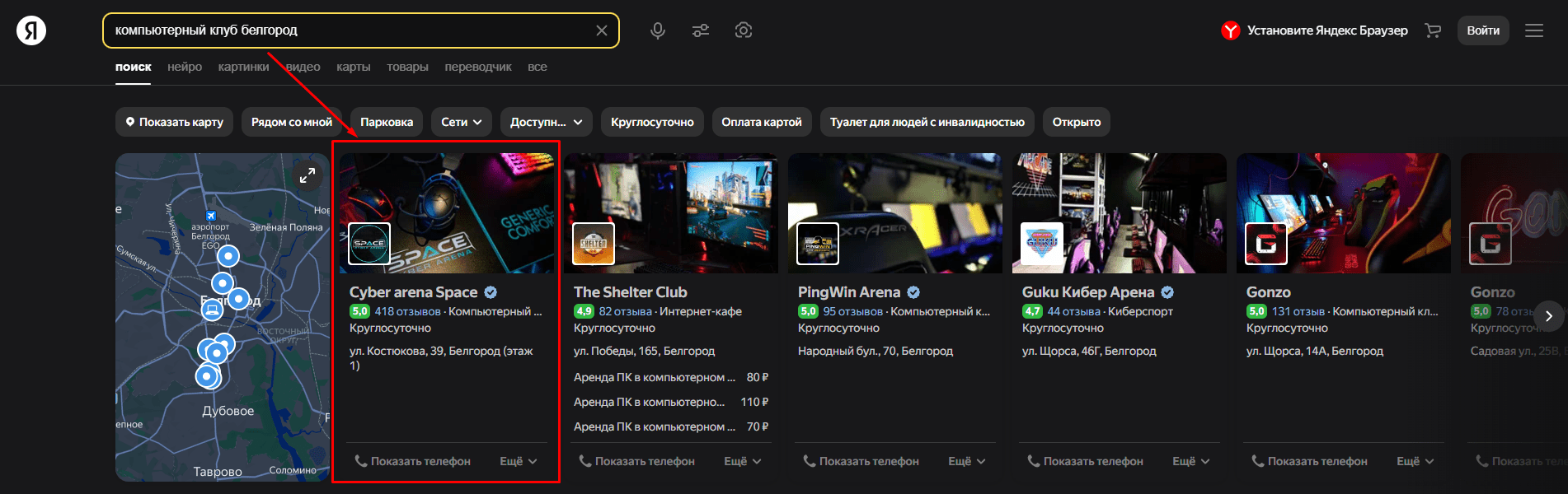 1. С самого открытия клуба мы начали вкладываться в Я.Карты, очень плотно работали с отзывами. Как итог - стали ТОП-1 в выдаче, обогнали все клубы по кол-ву оценок и отзывов. Сначала мы работали на карты, а теперь они работают на нас.