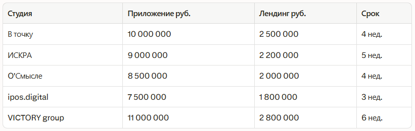 - Лендинг: 800к–3 млн руб.
