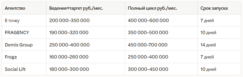 - Ведение+таргет: 120–350к руб./мес.