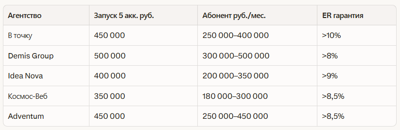 - Абонент 10+ постов/нед: 150–350к руб./мес.
