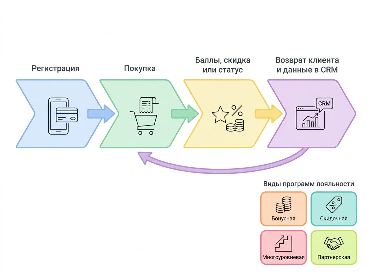 Если коротко, что такое Loyalty Program (программа лояльности) — это управляемая модель повторного контакта с клиентом. Она нужна там, где покупатель может вернуться: в рознице, e-commerce, общепите, салонах, клиниках, фитнесе, сервисных услугах, B2B с регулярными заказами.